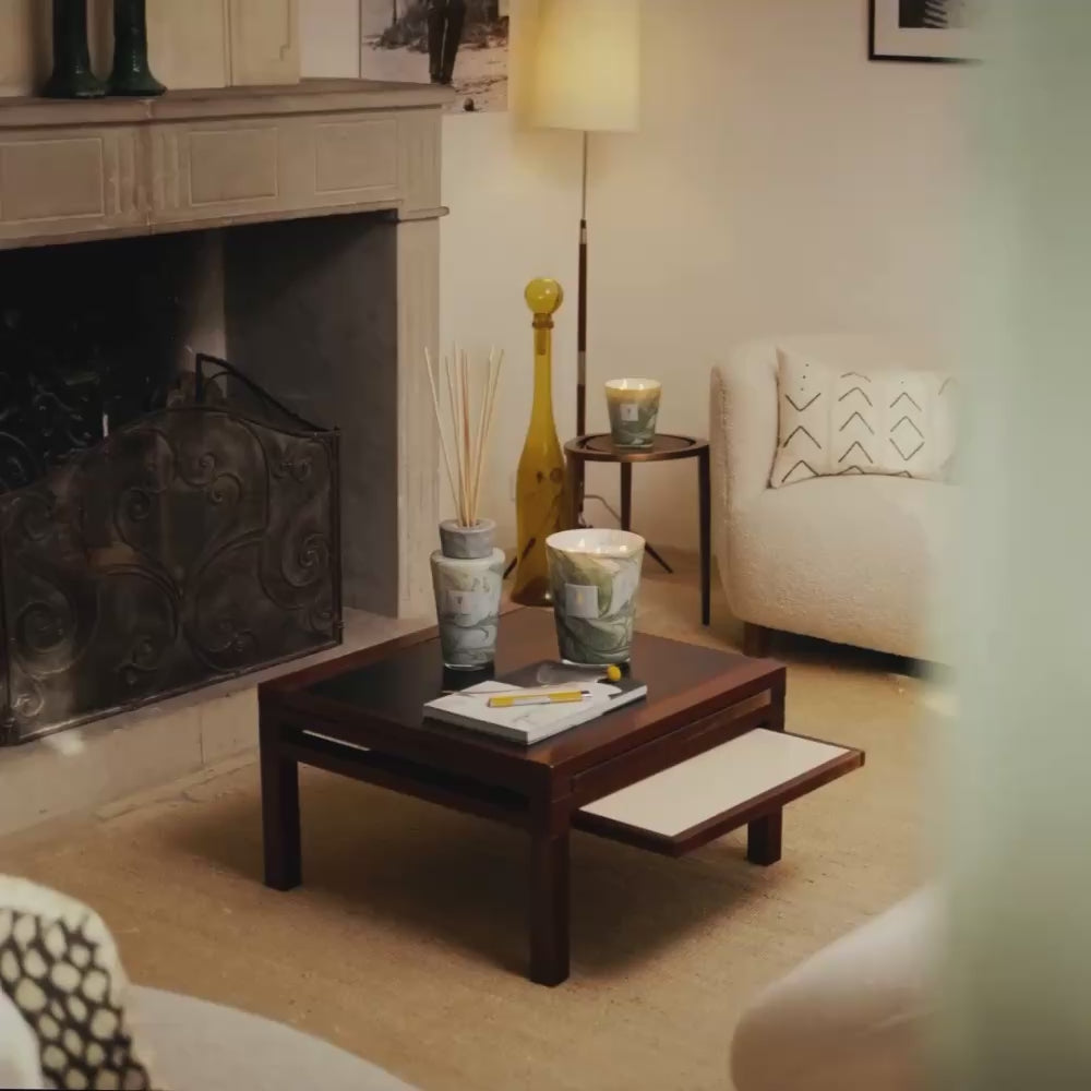 Leaves is imagined as a collection for interiors that seek freshness, softness and natural sophistication. The scented candles bring together decorative beauty and olfactory refinement, while the perfume diffusers extend this atmosphere with a continuous and elegant fragrance presence.