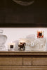 The Céleste scented candle is decorated with a 24-carat gold and deep blue silk-screen print, recalling the architecture of the Krakow Cathedral’s celestial vault. The design is an interpretation of the nave: an ogival ceiling, painted on a blue background and studded with small golden stars. The decor is placed around the glass like imaginary doors opening to the sky.